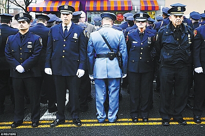 布拉顿在葬礼前呼吁保持克制。他在写给纽约3.4万名警察的一份备忘录中说:“英雄的葬礼是要表达悲伤,而不是表达不满。”