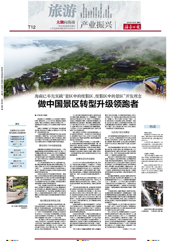 ■ 本报记者 杨春虹就在国内不少旅游景区(点)还在谋求门票涨价盯着门票经济时,从2009年开始,海南就在全国率先提出“景区中的度假区,度假区中的景区”即——旅游境区的开发理念,成为中国景区转型升级的领跑者。