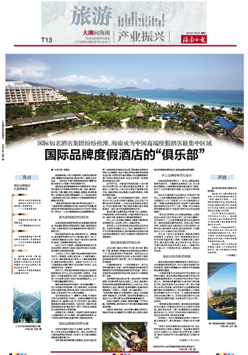 如果说,海南岛是一块正在精心雕琢中的宝石,围绕它的是众多璀璨的玉石海湾,那么海湾上越来越多的高星级度假酒店,就是晶莹剔透的翡翠。