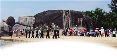 二○一四年国庆黄金周前夕,三亚边防官兵加大景区治安巡逻力度,减少旅游消费纠纷。本报记者 张茂 通讯员 任永峰 摄