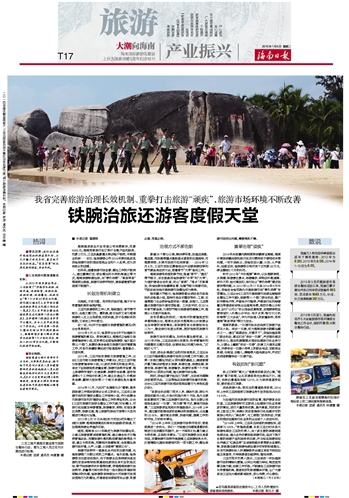 近年来,随着旅游市场监管、整治工作的不断深入,通过重拳打击、综合整治和长效机制建立等方式,海南旅游铁腕治旅,向“零负团费”、“欺客宰客”等顽疾出狠招,旅游市场秩序转好,游客满意度和舒适度不断提升。