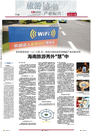琼海、三亚、万宁等我省重点旅游城市以及景区、酒店、旅行社等旅游企业也纷纷加足马力,为旅游产业插上“智慧”的翅膀。