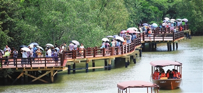 海口红树林旅游区人气火爆。 本报记者 张茂 摄