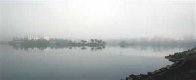 1月5日清晨,大雾笼罩下的海口红城湖。 本报记者 张茂 摄