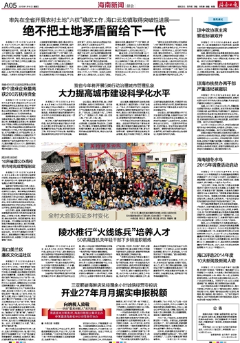 1月13日,儋州市新州镇英均村第4村民小组的村民在村里新落成的大门前合影,纪念村里又一个新变化。