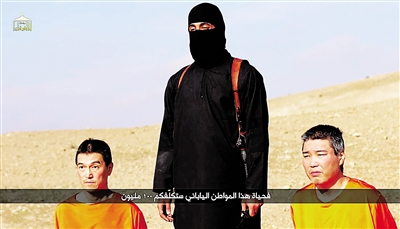 这张“伊斯兰国”极端组织1月20日公布的视频截图显示两名日本人质跪在手持匕首的“伊斯兰国”极端组织成员(中)旁边。 “伊斯兰国”极端组织称如果72小时内未收到2亿美元赎金,将杀害两名日本人质。 据以色列媒体报道,安倍晋三20日在耶路撒冷召开的新闻发布会上要求两名日本人质“在不受到任何伤害的情况下无条件被释放”。他还决定中止其中东之行。