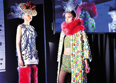 1月20日,在日本东京,模特们穿着由巧克力和糖果制作、装饰的服装在巧克力沙龙展上进行展示。当日,100多家著名巧克力制造商在展会上展示他们的产品。 新华社/法新