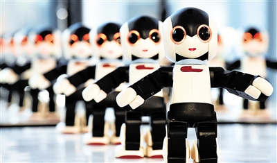 1月20日,在日本东京,“罗比”机器人表演舞蹈。 当日,在日本东京举行的《Robi》周刊宣传活动上,设计师高桥智隆展示了100个“罗比”机器人。“罗比”是一个34厘米高的机器人,它可以说话、走路和跳舞。每期《Robi》周刊会附送一些“罗比”的零件,读者必须要凑齐70期《Robi》才可以得到一个“罗比”机器人。