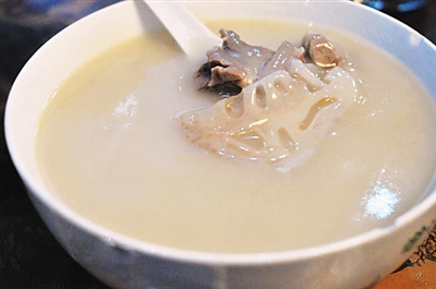 热腾腾的面糊糊是用太原独特的东山泉水,晋南平原秋天刚刚收获的麦子打成的面粉,和秘制的中药材熬制而成,并放入独特的晋北羊肉、莲藕和山药。张老爷子脱掉外套,拿起筷子开始大快朵颐。