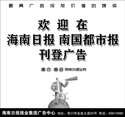 欢迎在海南日报 南国都市报刊登广告