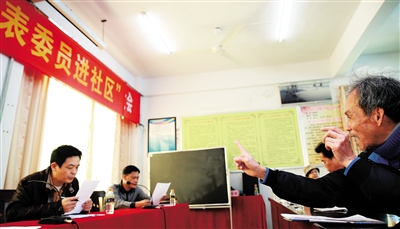 我省两会召开在即,代表委员进社区听民意,问民情,要将最真实的百姓声音带到两会上,受到群众的好评。本报记者 李英挺 摄