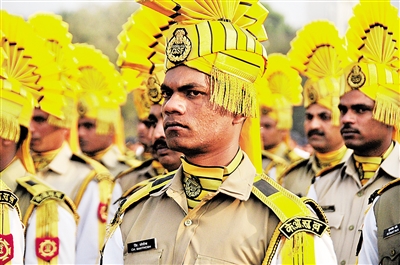 1月24日,在印度孟买,陆军士兵参加共和国日游行彩排。 当日,印度马哈拉施特拉邦政府在孟买举行共和国日游行彩排。印度将于1月26日迎来第66个共和国日。1950年1月26日,印度签署宪法,宣布成立共和国。1月26日被定为共和国日。 新华社记者汪平摄