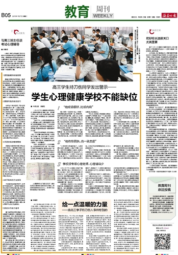 真心希望,高三班主任和家长们,用灿烂的笑容、温暖的陪伴、激励的言语、耐心的指导,给身心疲惫的学子一点温暖的力量,让他们更有信心迎接高考的挑战。(作者为海师附中心理健康教育特级教师)