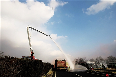 1月30日,一架警用无人直升机在演练现场进行实时拍摄并传输信号。 当日,由山东潍坊公安、交警、消防、卫生等多部门联合开展的高速公路交通事故应急演练在荣威高速公路潍坊坊子收费站处举行。一架警用无人直升机首次参与演练,飞临“危险化学品泄漏起火”现场,把情况实时传输到地面控制站。