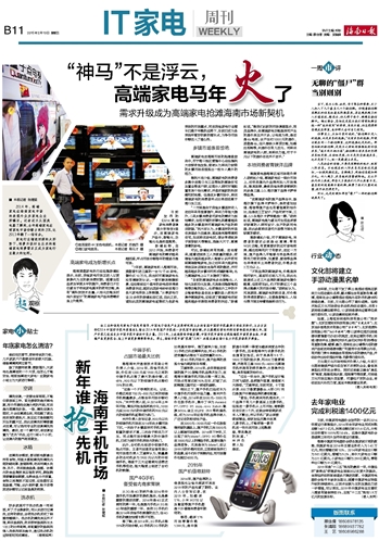 由工业和信息化部电子信息司指导、中国电子信息产业发展研究院主办的首届中国好手机盛典日前在京举行,主办方发布《2014中国好手机年度报告》,指出2014年是国产手机进一步巩固市场份额,并从规模运营向利润运营转型的关键之年,国产手机已经成长为中国手机市场的中坚力量。2015年,上述趋势将持续发酵,中国手机市场将出现低端机市场更多血战、中高端产品更多机会、线上市场更多精彩等特点。那么,海南手机市场“机遇”几何?本报记者在海口各大手机卖场展开调查。