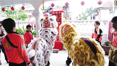 舞狮是马来西亚海南籍侨胞的春节传统节目。 谢向荣 摄