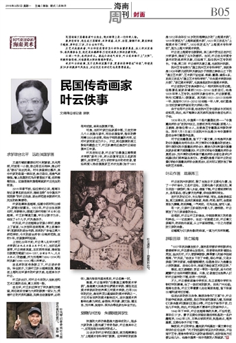 文\海南日报记者 陈耿民国海南文昌籍画家叶云先生,绝对称得上是一位传奇人物。