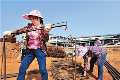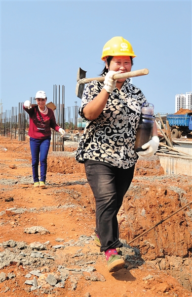 5日上午,烈日下几位女性工人正在新建海南西环铁路海口站工地上挥汗如雨。据了解,西环铁路线5万多建设大军中,有3000多名女性工人。“三八”妇女节即将到来,让我们为这些奋战在西环铁路建设工地的“铁娘子”们点赞。