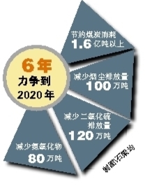 此次计划实施期为2015至2020年,力争到2020年,节约煤炭消耗1.6亿吨以上,减少烟尘排放量100万吨、二氧化硫排放量120万吨、氮氧化物80万吨。