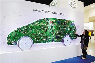 3月6日,在韩国济州岛,比亚迪工作人员在第二届国际电动汽车展上介绍比亚迪的整车电路板。 当日,第二届国际电动汽车展在韩国济州岛会议中心开幕,吸引了包括宝马、现代、起亚、雷诺三星、尼桑、比亚迪等70多家汽车及设备制造商参展。本次展览为期十天,将于3月15日闭幕。 新华社记者 彭茜 摄