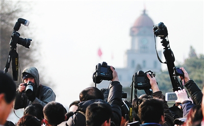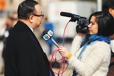 全国两会如火如荼进行时,会场内外,媒体“激战”正酣。 本次全国两会共有3100余名海内外记者参与现场报道。媒体记者中,“女汉子”们都是蛮拼的。每一次代表委员的出现都会引发一场“媒体大战”。 本报特派记者 张杰 摄