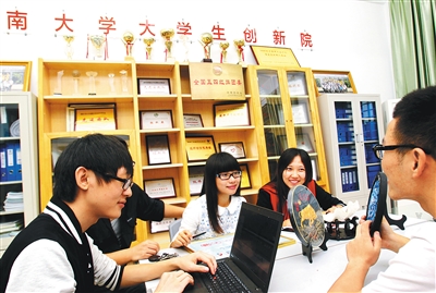 大学生创业者们在讨论产品的开发思路。 本报记者 陈元才 摄