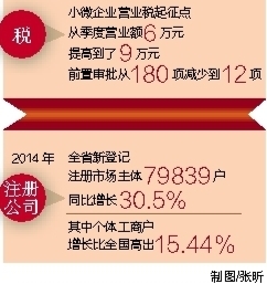 “之前朋友注册过,花了1个半月。刚开始做了‘等待’的心理准备,没想到20天就把所有的事搞定,拿到了所有证书。”去年12月底,周贝就成功注册了公司。“手续费也比之前朋友注册的少了三分之一。另外,小微企业的税收也减少了,让我创业少了不少负担,例如,营业税起征点从季度营业额6万元提高到了9万元。”
