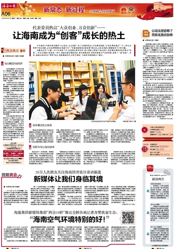 ■ 本报特派记者 陈蔚林9个小时,28万人次阅读量。这个数据源自于全国主流媒体两会报道联盟对十二届全国人大三次会议海南团开放日的滚动报道。昨天下午,广大微友通过关注海南日报报业集团新媒体集群发起的“聚焦海南团开放日”微话题,如同身临开放日现场,与代表实现了及时对接。