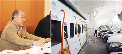 右图:北京市大兴区的出租汽车充电站。 新华社发