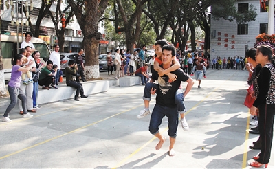 据了解,趣味游园活动设有同舟共济、夫妻互背、超级保龄球赛、蒙眼击鼓、乾坤大挪移等五个项目。