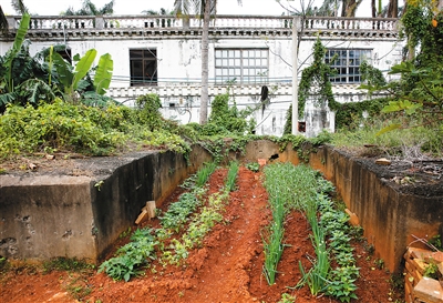 位于海口滨海大道滨海公园内的镇琼炮台内的炮位上如今已种上了蔬菜。 海南日报记者 宋国强 摄