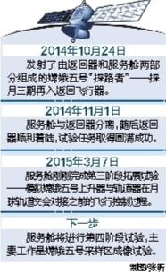 为确保嫦娥五号奔月、月球采样、返回地球任务的顺利完成,我国于2014年10月24日发射了由返回器和服务舱两部分组成的嫦娥五号“探路者”——探月三期再入返回飞行器。2014年11月1日,服务舱与返回器分离,随后返回器顺利着陆,试验任务取得圆满成功。服务舱拉升轨道,继续开展拓展试验。