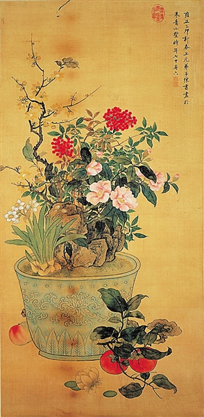 到过海南省博物馆的人,往往对二楼展厅中陈列的馆藏书画留下印象,其中,水墨长卷《四季花卉图》尤其引人瞩目。该图纵30.4厘米,横708厘米,以时间为序,将四季花卉集于一堂,姿态缤纷、生机盎然,流露出画家对大自然的无限热爱和颂扬之情,有着强烈的艺术感染力。这幅画的作者是清代著名诗人兼画家钱载,而他的启蒙老师则是雍乾年间享誉一时的闺阁画家陈书。