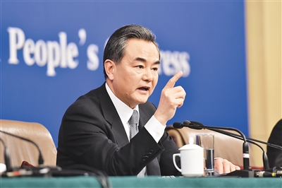 外交部部长王毅回答中外记者提问。 新华社记者 李鑫 摄