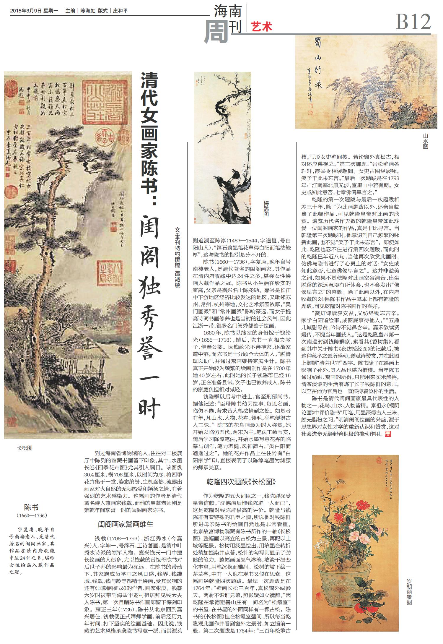 清代女画家陈书:闺阁独秀誉一时