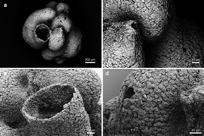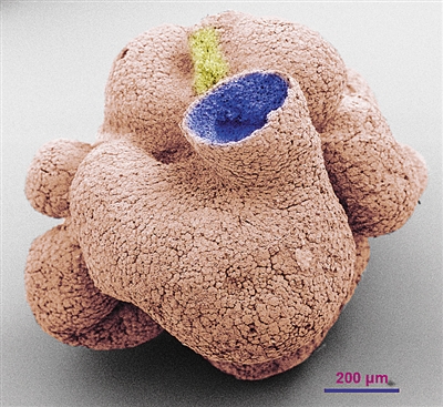那么瓮安生物群中究竟有没有动物呢?不懈的研究终于得到答案。此次在瓮安生物群中发现的“贵州始杯海绵”是保存细胞结构的三维动物成体化石,不是胚胎期化石。在仅仅2-3立方毫米如“米粒”般微小体积上,其动物的细胞组织结构清晰易辨,完好的水沟系统保存精美。
