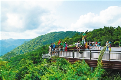 游客在呀诺达热带雨林中畅游,享受饱含负氧离子的新鲜空气。本报记者 武威 摄