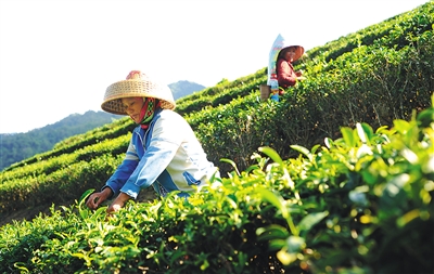 绿油油的茶叶赏心悦目。 本报记者 苏建强 摄