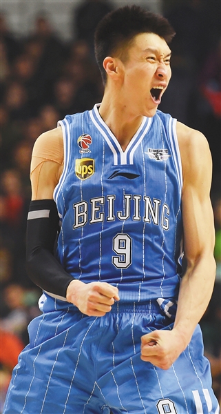 北京队球员孙悦在比赛中庆祝进球。 新华社发