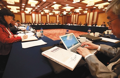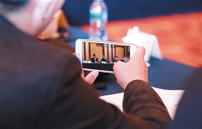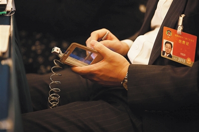 3月10日,全国两会会场,代表委员们的案头都放了些什么,他们又在做什么?从记者的镜头中,我们感受着别样的会议氛围:代表委员们要么用手机、电脑,要么用笔,记录会议的重要内容。本报特派记者 张杰 摄