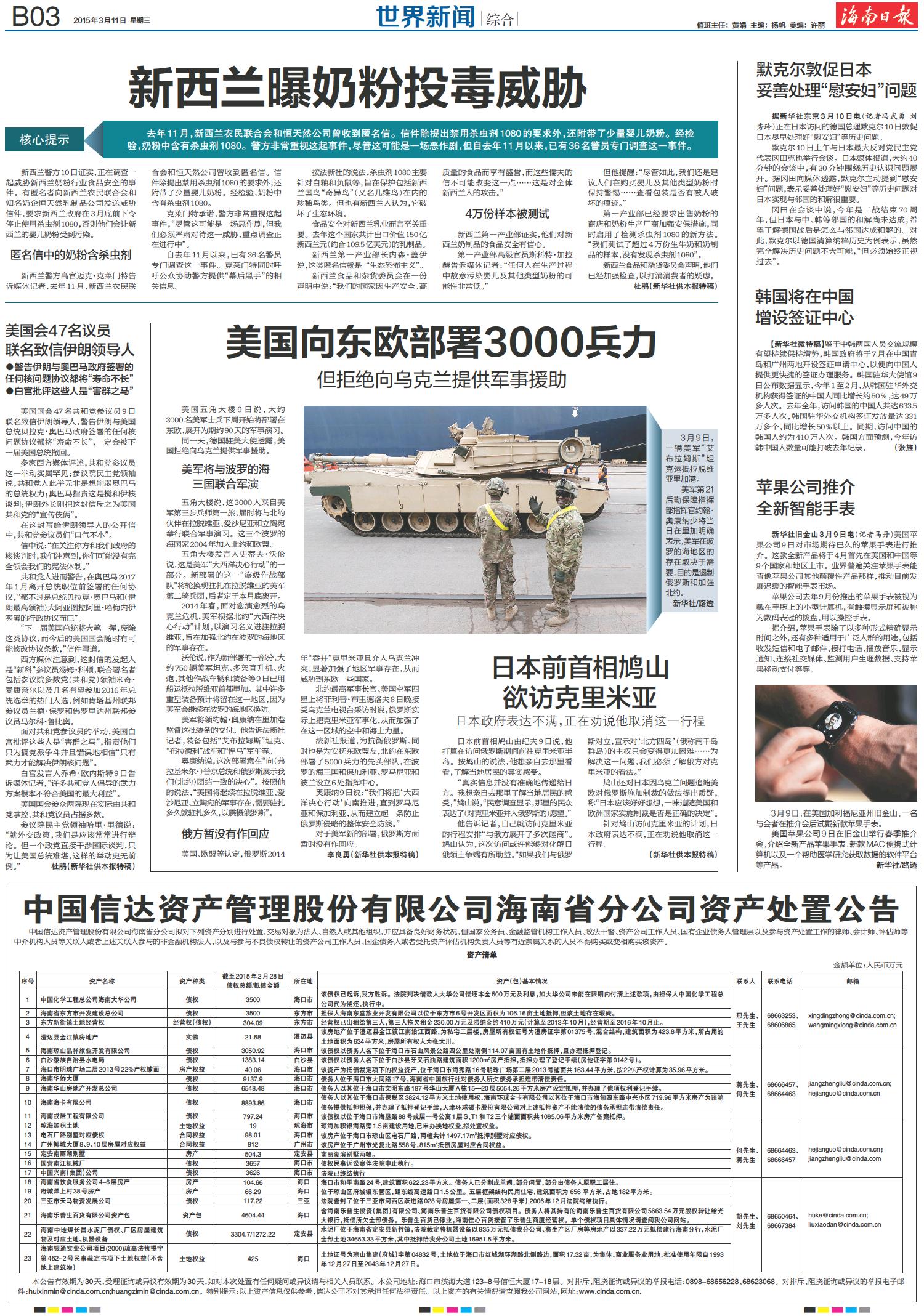 中国信达资产管理股份有限公司海南省分公司资产处置公告