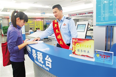 海口市地税局办税大厅工作人员耐心引导纳税人办理所得税申报业务。 (海口市地税局提供)
