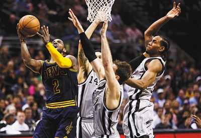 欧文(左)在与马刺队的比赛中上篮。 新华社发