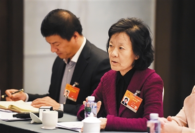 3月13日,全国人大代表张玉坤(右)在十二届全国人大三次会议辽宁代表团会议上发言。 在推进新一轮东北老工业基地振兴中,金融产业需要承担更加重要的角色。全国人大代表、沈阳盛京银行董事长张玉坤建议,通过前瞻性的优化金融产业布局,在辽宁乃至东北地区构建起一个全面发展且运行良好的金融产业体系,为服务东北经济振兴服务。 新华社记者 杨青 摄