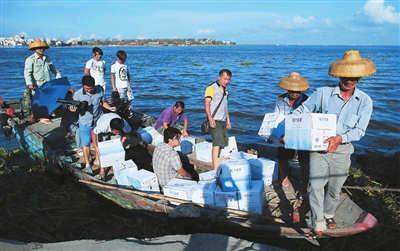 东寨港出海口处北港岛的居民,出入交通要靠船只。 张茂 摄