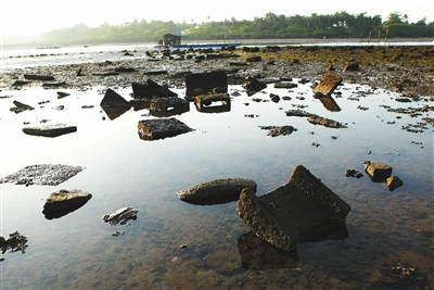 海口演丰镇林市村一带琼北大地震遗址。退潮时,海底村庄露出水面。 海南日报记者 李幸璜 摄