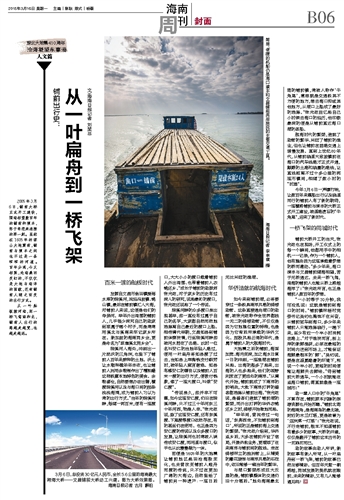文\海南日报记者 刘笑非2005年3月6日,铺前大桥正式开工建设,隔海相望数百年的铺前和演丰,终于将迎来连接的那一刻。虽然在1605年的琼山大地震前,铺前与演丰之间也不过是一条窄窄的河道。百年分离,今又相聚,沧海桑田变幻的,不仅仅是大地与海洋的面貌,还有铺前人随之而变的出行方式。