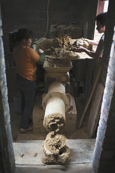 王科干老人向记者回忆:上个世纪50年代他开始跟着父亲学习制陶的时候,文彩村、永巩村大概有200名制陶人。“那时候,三五个制陶人就是一个制陶工地,每天都在工棚里用手拉制陶半成品。两个村有五个烧陶用窑,最长的窑体有20多个窑洞”。