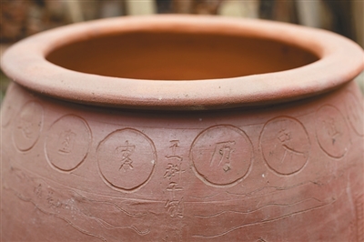 王科干老人为记录龙塘制陶曾经的辉煌,制作了一个陶罐,并将制陶艺人的姓名刻录在陶罐上。 本版图片均由海南日报记者宋国强摄