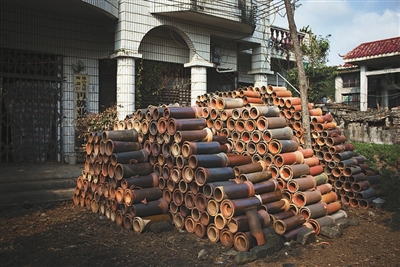 昔日辉煌的琼山龙塘陶瓷厂如今已一片破旧。空地上经常被用来堆放一些陶器。